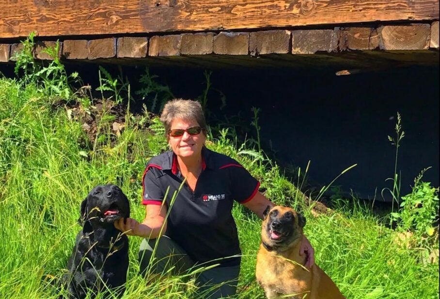 Jed the black lab, was her business partner since the beginning of Sit Means Sit in 2008. He passed away in 2022. He will always be the “founder” of the company.